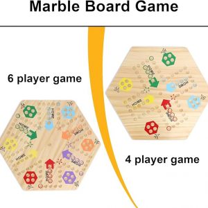 Original Marble Game Wahoo Board Game Double Sided Painted Wooden Fast Track Board Game for 6 and 4 Players 6 Colors 24 Marbles 6 Dice for Family Friends